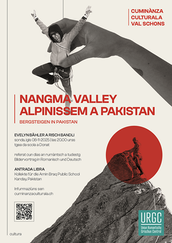 Risch Bandli, Tierarzt, und seine Frau Evelyn Bähler, Aufnahmeleiterin bei SRF, erzählen von ihrer Reise ins Nangma Valley in Pakistan. Der Vortrag mit eindrücklichen Bildern ist in Deutsch und Romanisch.